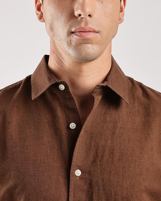 Brown Comfort-Fit Cotton Shirt Office Wear