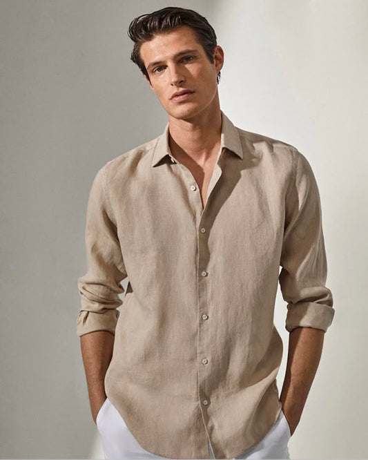 • Coastal Beige Timeless Full Sleeve Cotton Shirt