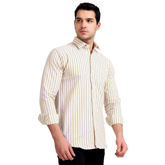 • Yellow Colored Striped Cotton Shirt