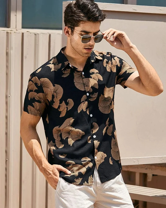 • Black Color Rayon Half Sleeve Shirt