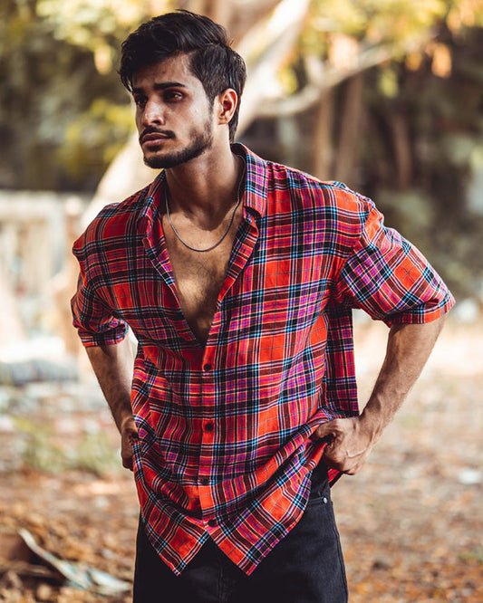 Maroon & Blue Colored Cotton Full Sleeve Shirt