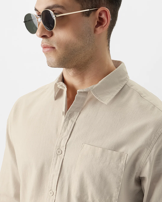 Latest Cotton Linen Beige Colored Cotton Shirt