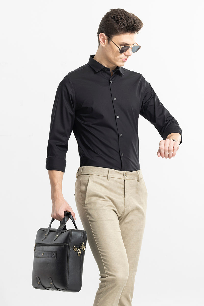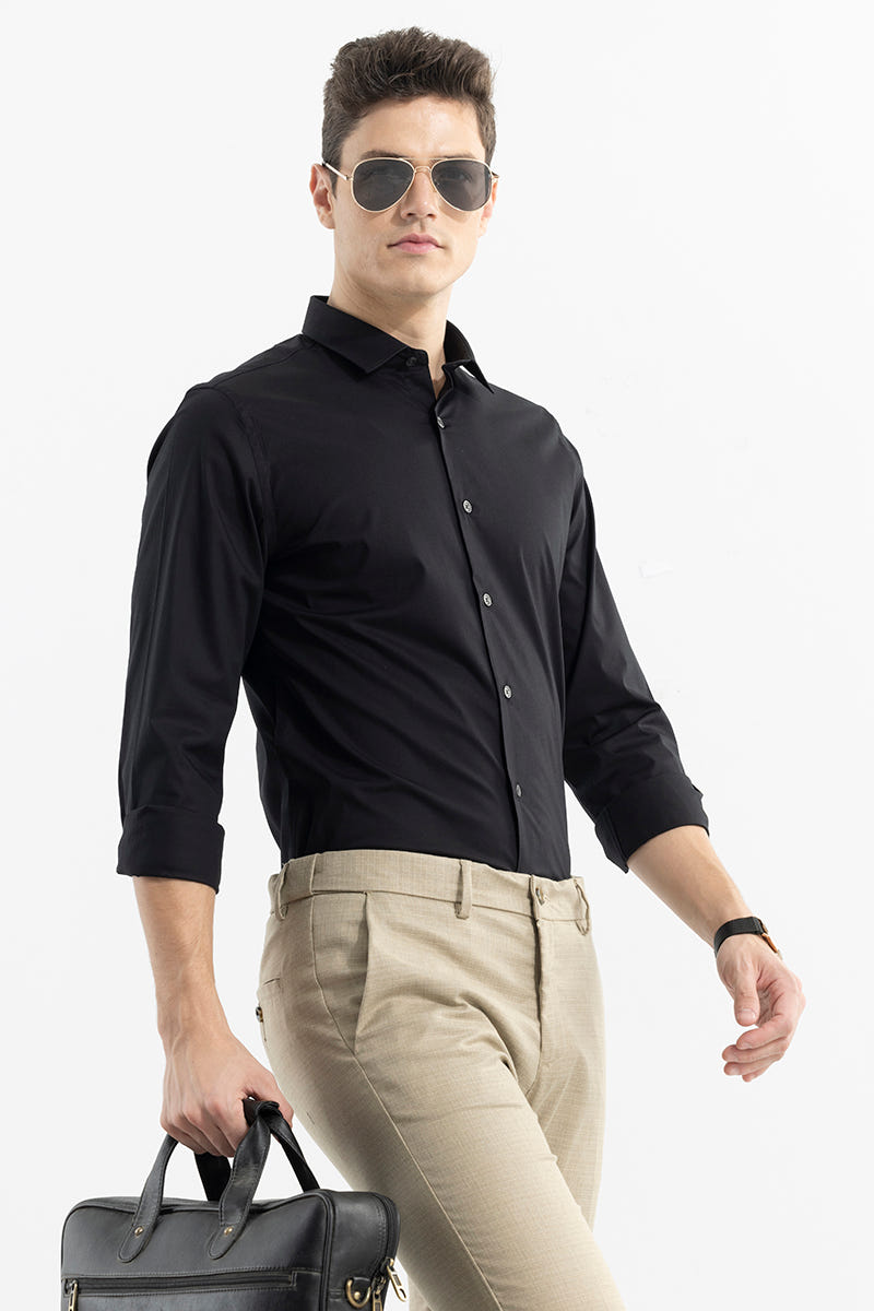 Matte Black Smooth Cotton Shirt with a Strong Contemporary Feel