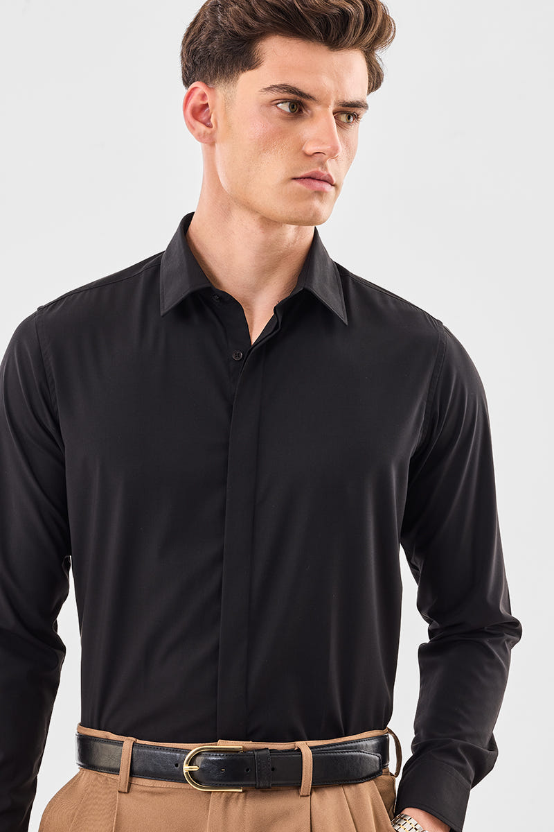 Solid Black Pure Cotton Shirt in a Smooth Refined Shade